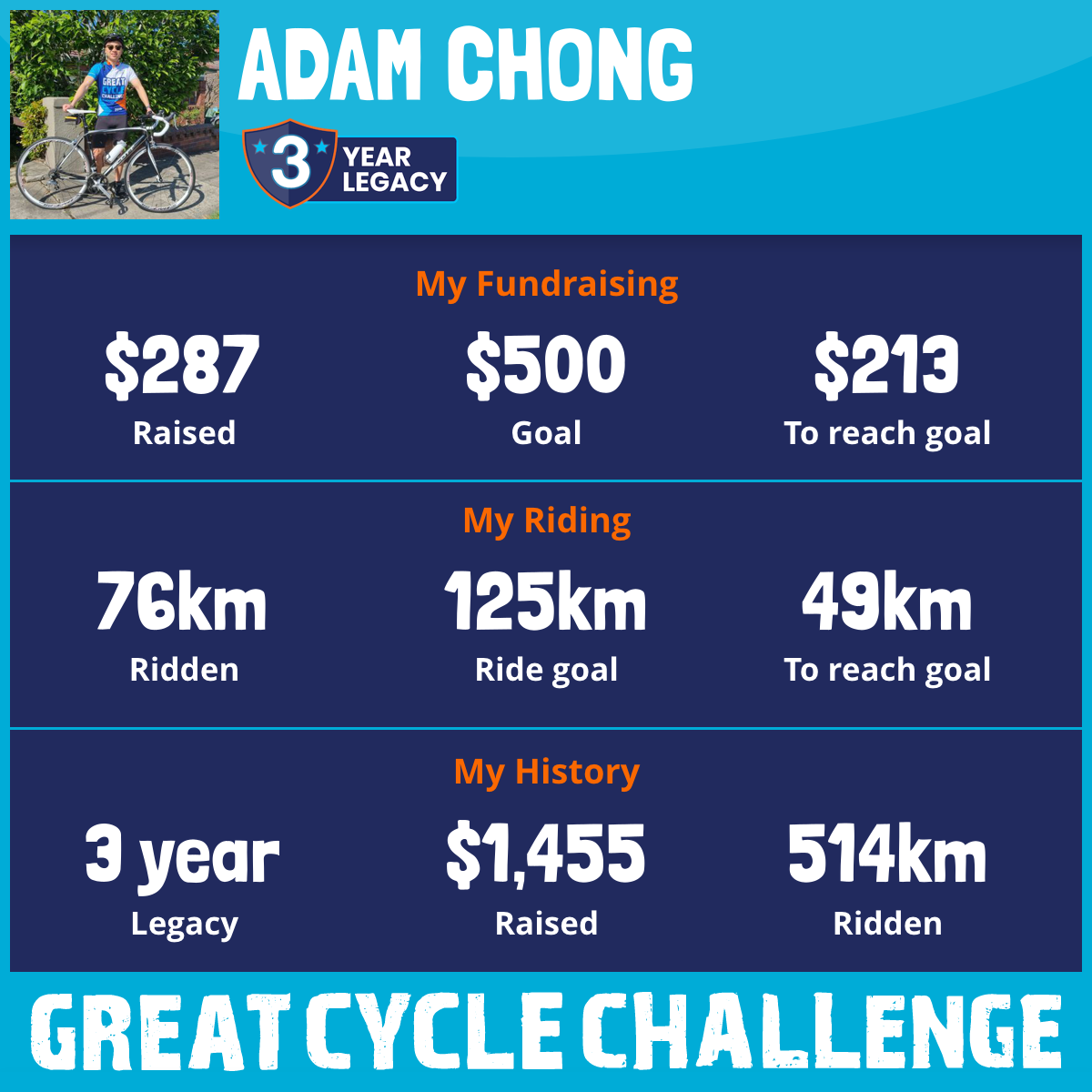 76 km Ridden$287 Raised2026