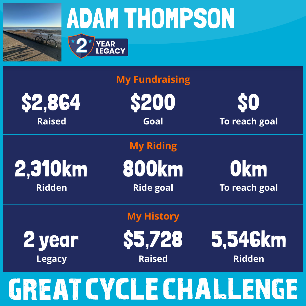 2,310 km Ridden$2,864 Raised2026