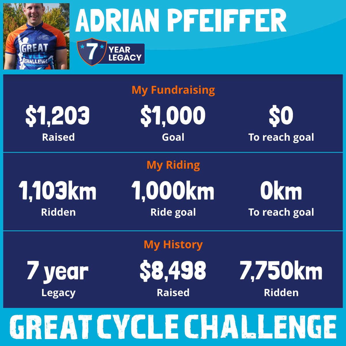 1,103 km Ridden$1,203 Raised2025