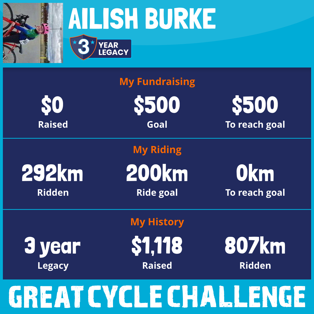 473 km Ridden$1,118 Raised2023