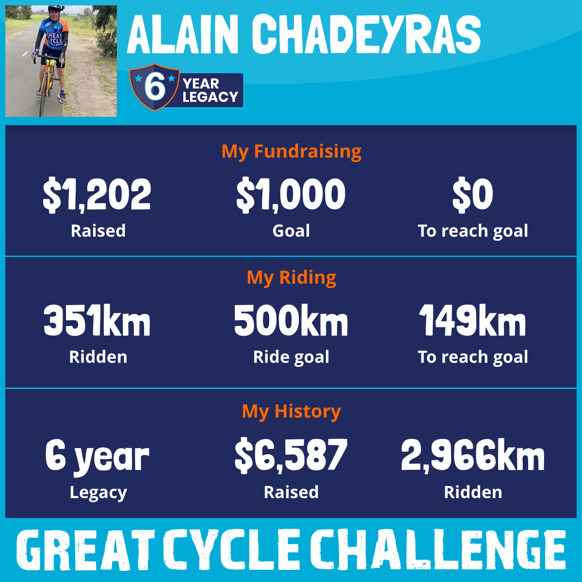 351 km Ridden$1,202 Raised2026