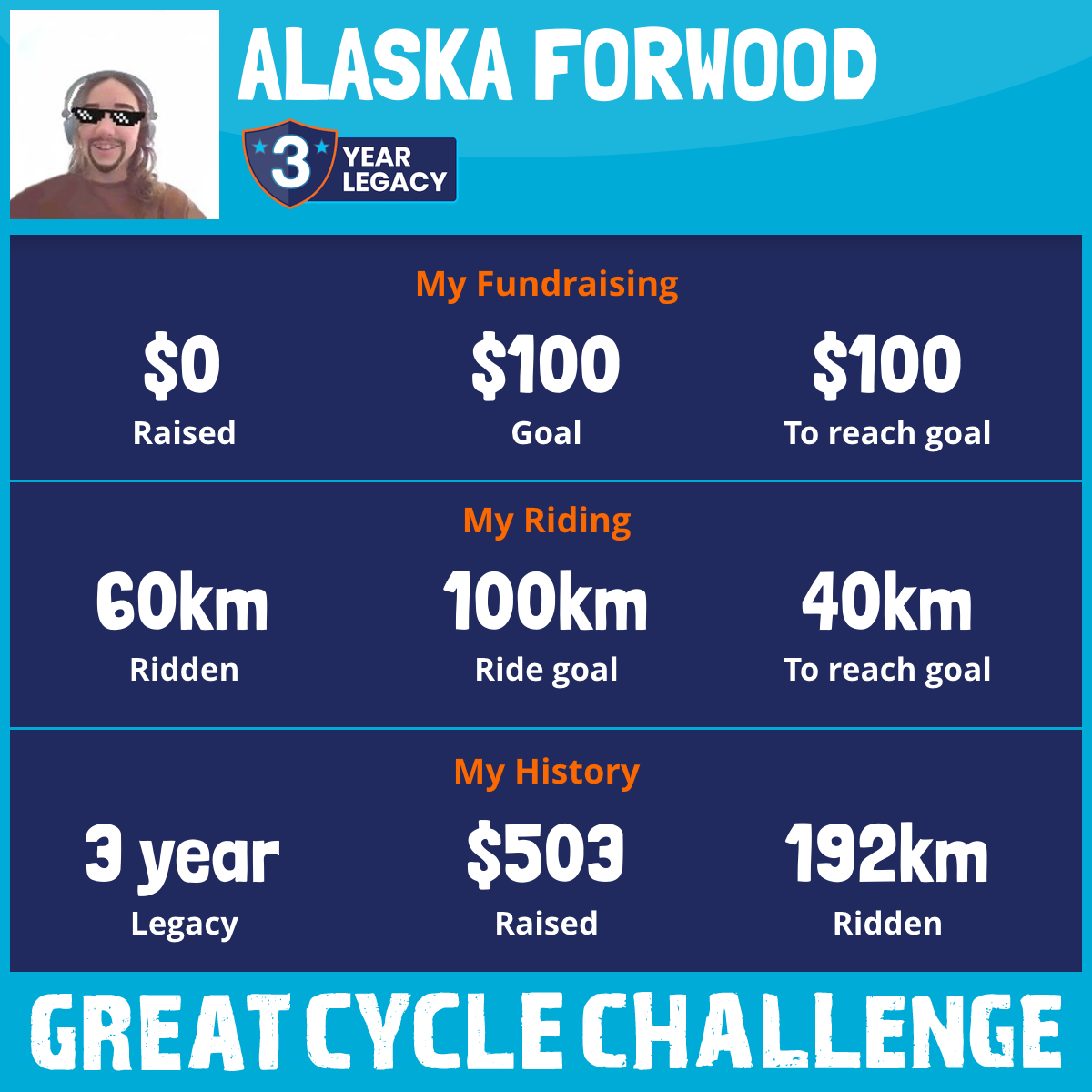 102 km Ridden$503 Raised2023