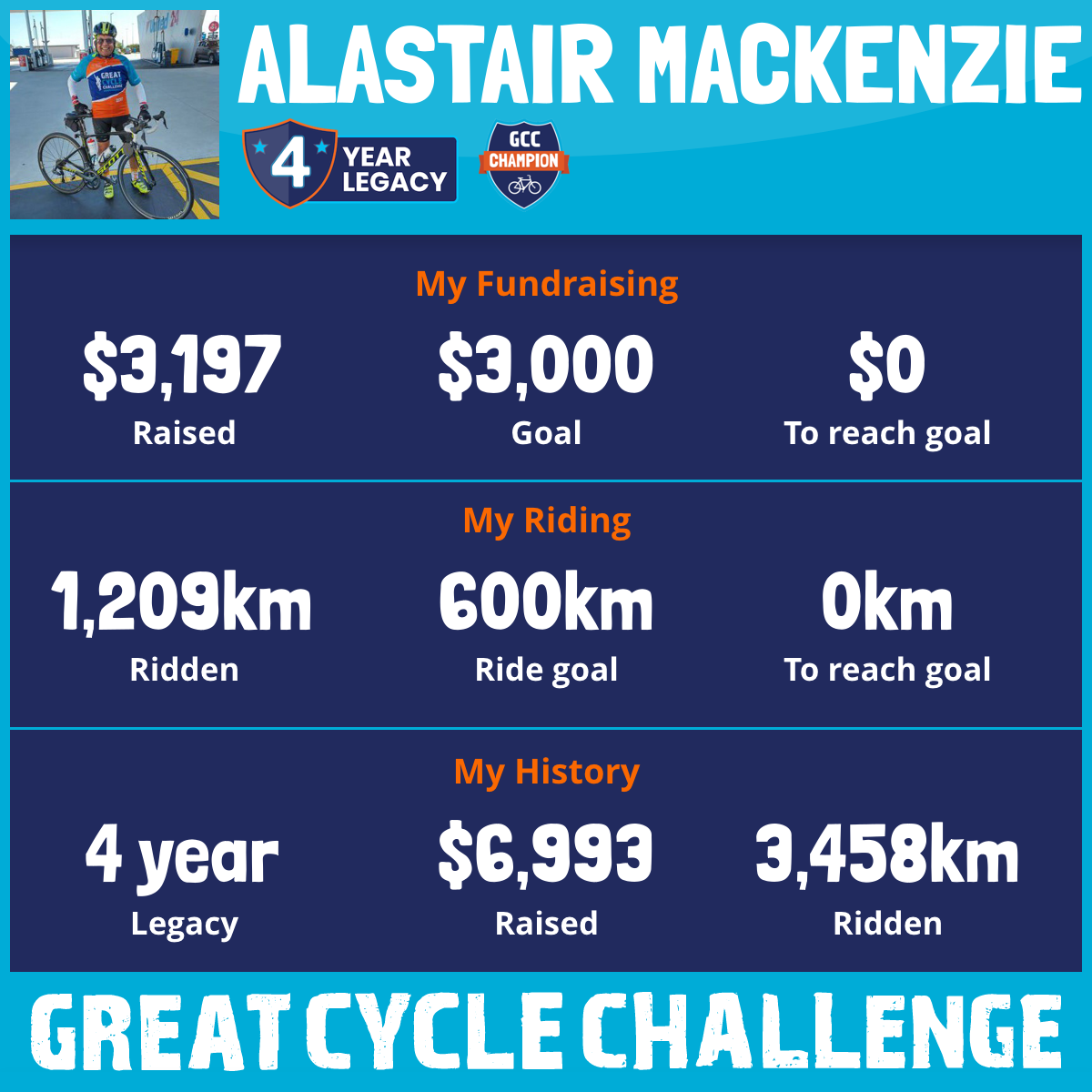 1,209 km Ridden$3,197 Raised2026