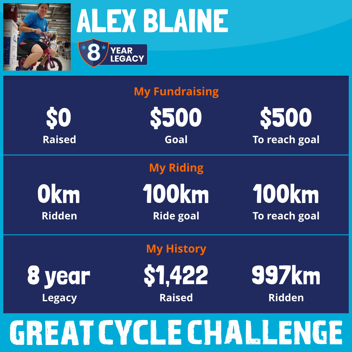 And so I am riding and raising funds to support the Children's Medical Research Institute to continue their work into the prevention, diagnosis, treatment and finding a cure for childhood cancer.