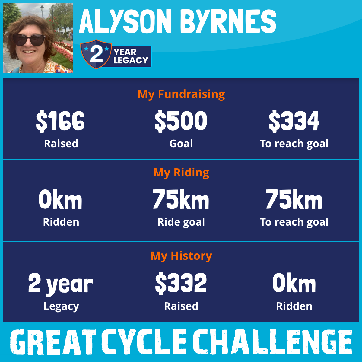 And so I am riding and raising funds to support the Children's Medical Research Institute to continue their work into the prevention, diagnosis, treatment and finding a cure for childhood cancer.