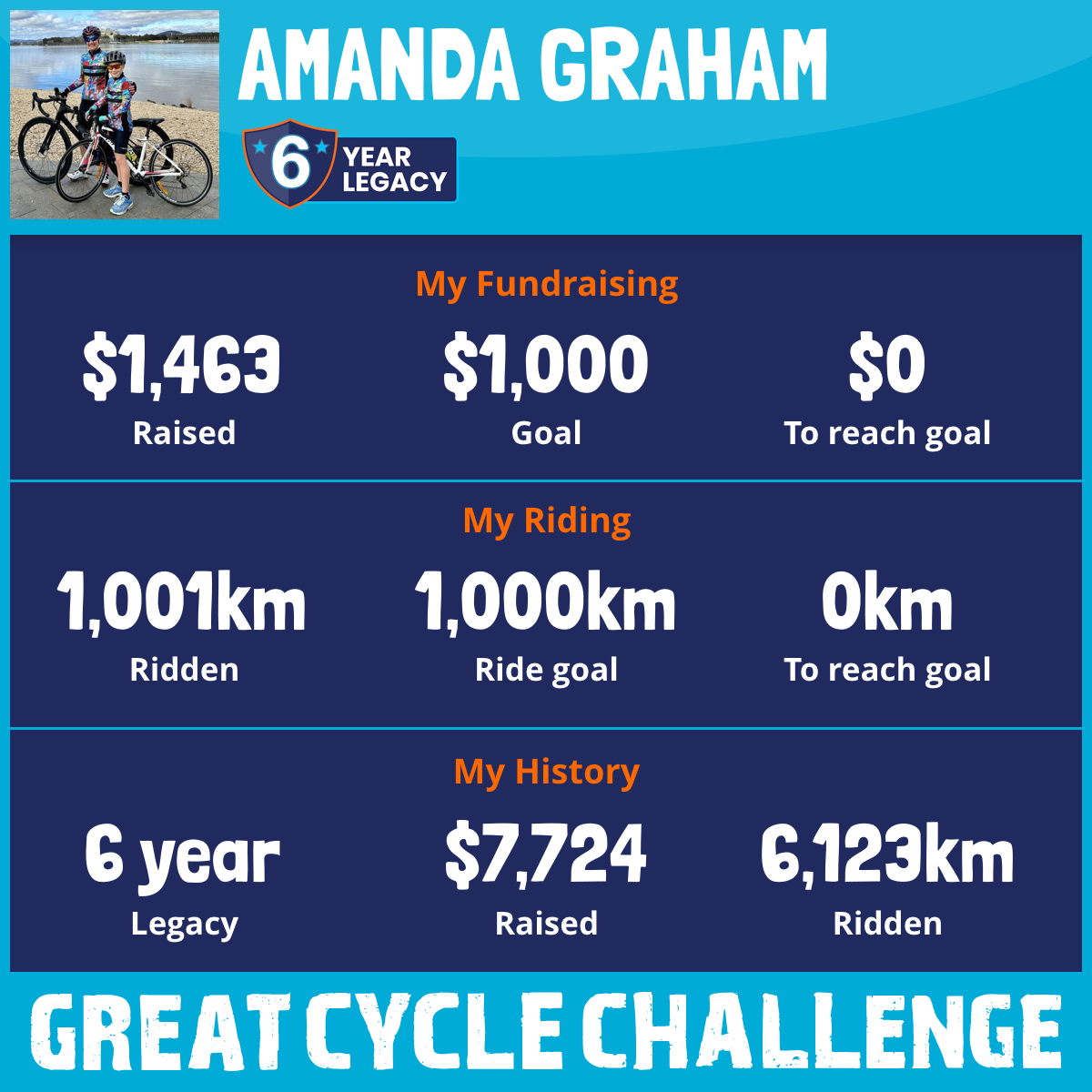 1,001 km Ridden$1,463 Raised2026