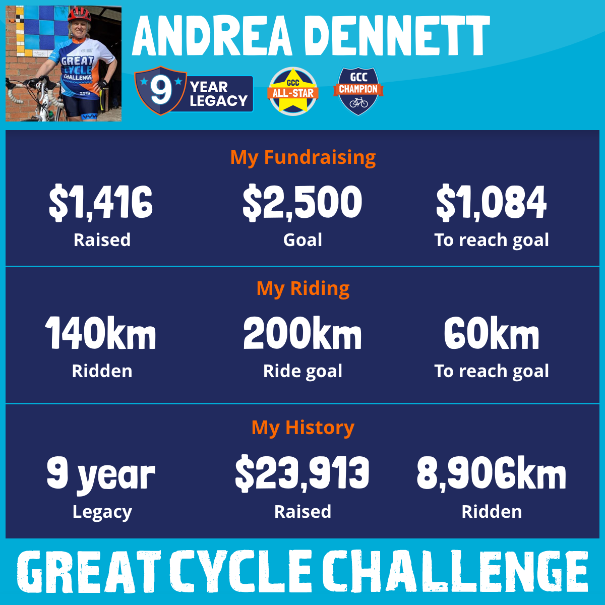 And so I am riding and raising funds to support the Children's Medical Research Institute to continue their work into the prevention, diagnosis, treatment and finding a cure for childhood cancer.