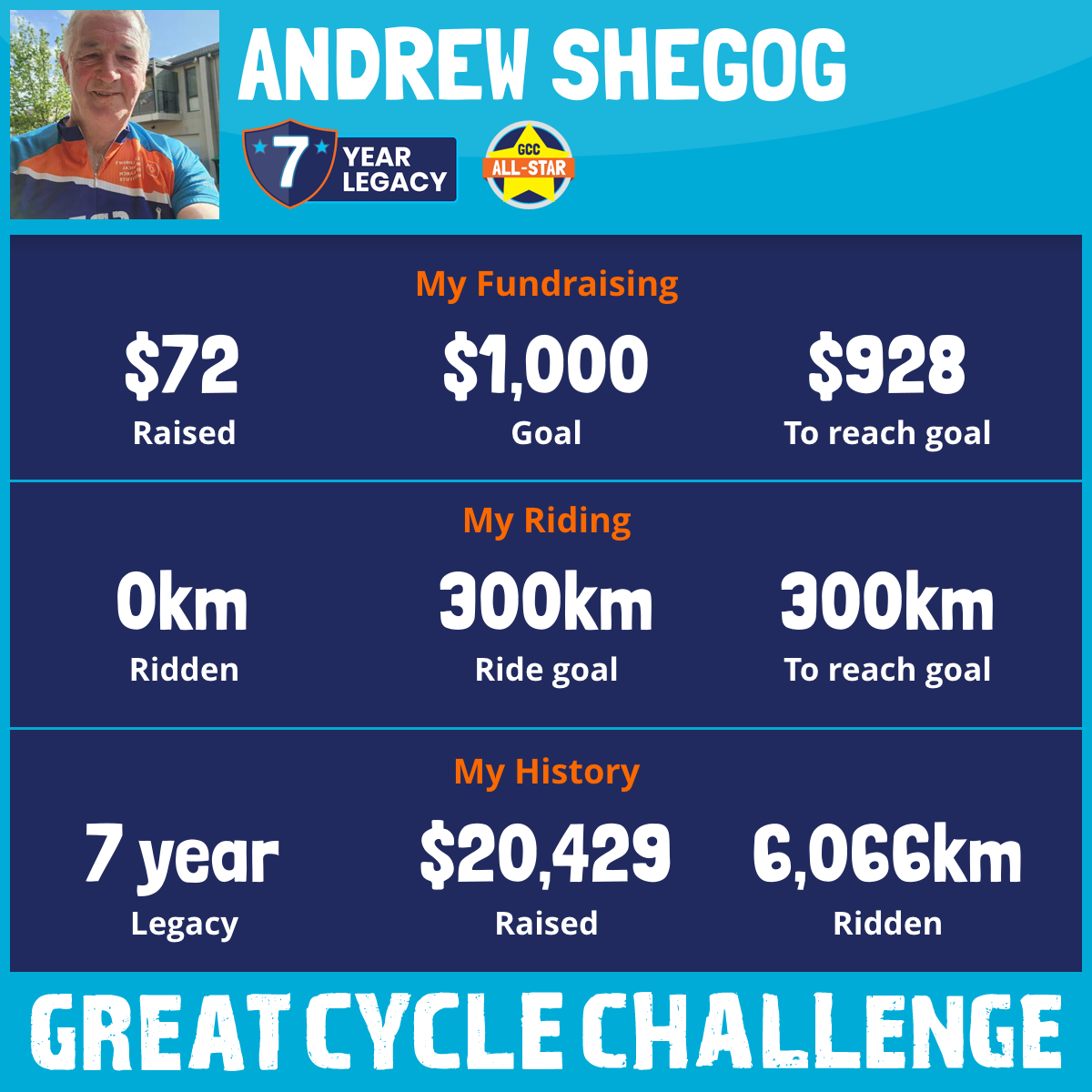 1,187 km Ridden$2,650 Raised2023
