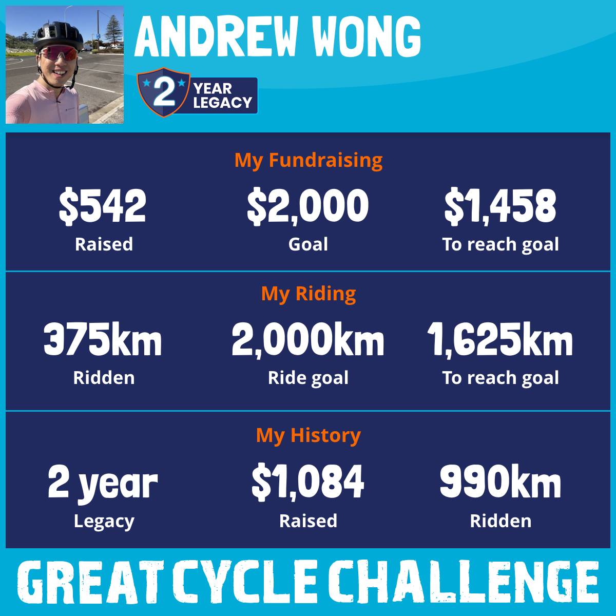As usual, my pledge is every for every $1 you donate, I will ride 1KM (from 1st of July to 31st of October)