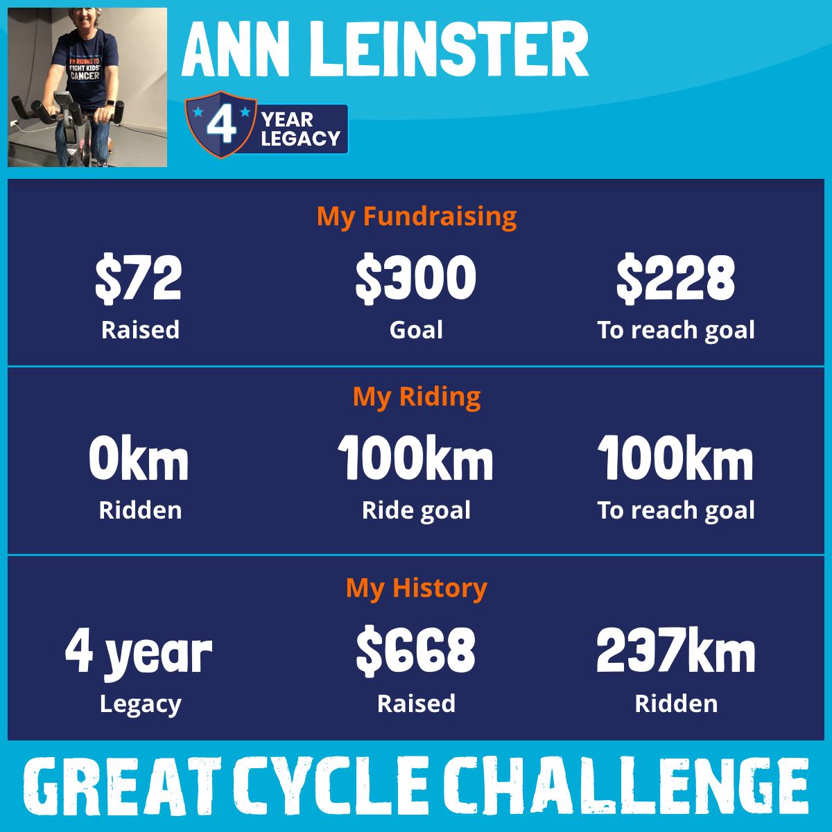 This October, I am taking part in the Great Cycle Challenge to fight kids' cancer!