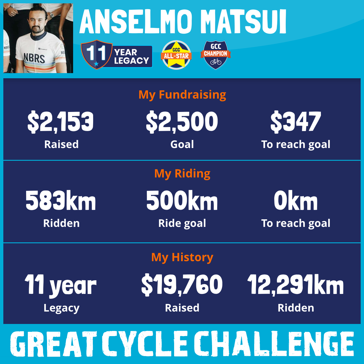 583 km Ridden$2,153 Raised2025