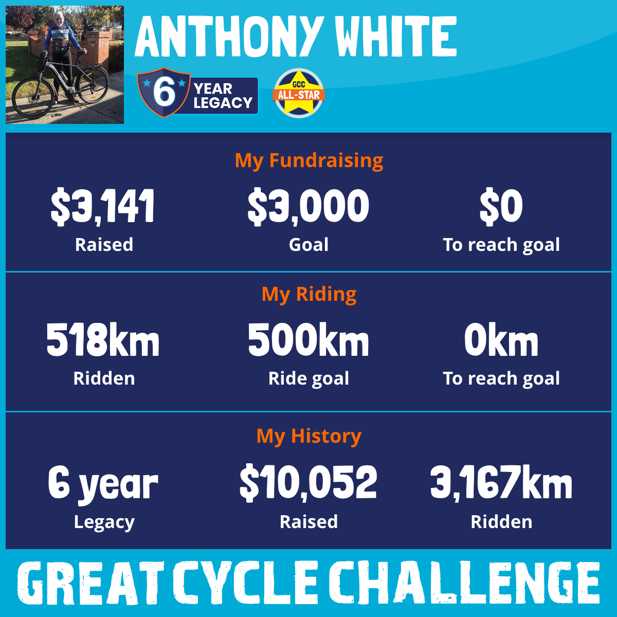 518 km Ridden$3,141 Raised2026