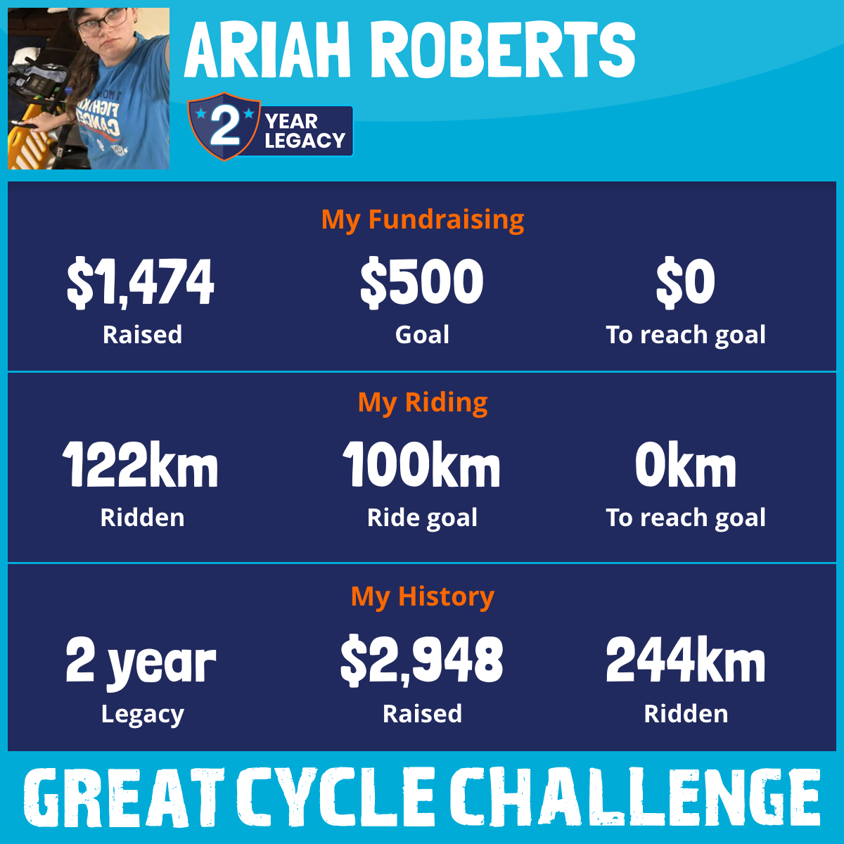 122 km Ridden$1,474 Raised2026