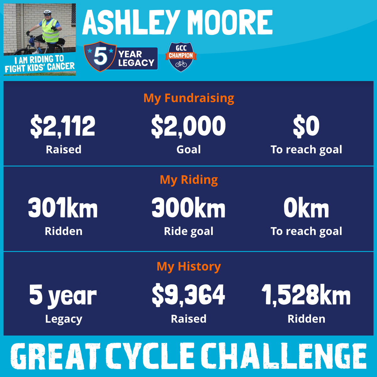 301 km Ridden$2,112 Raised2026