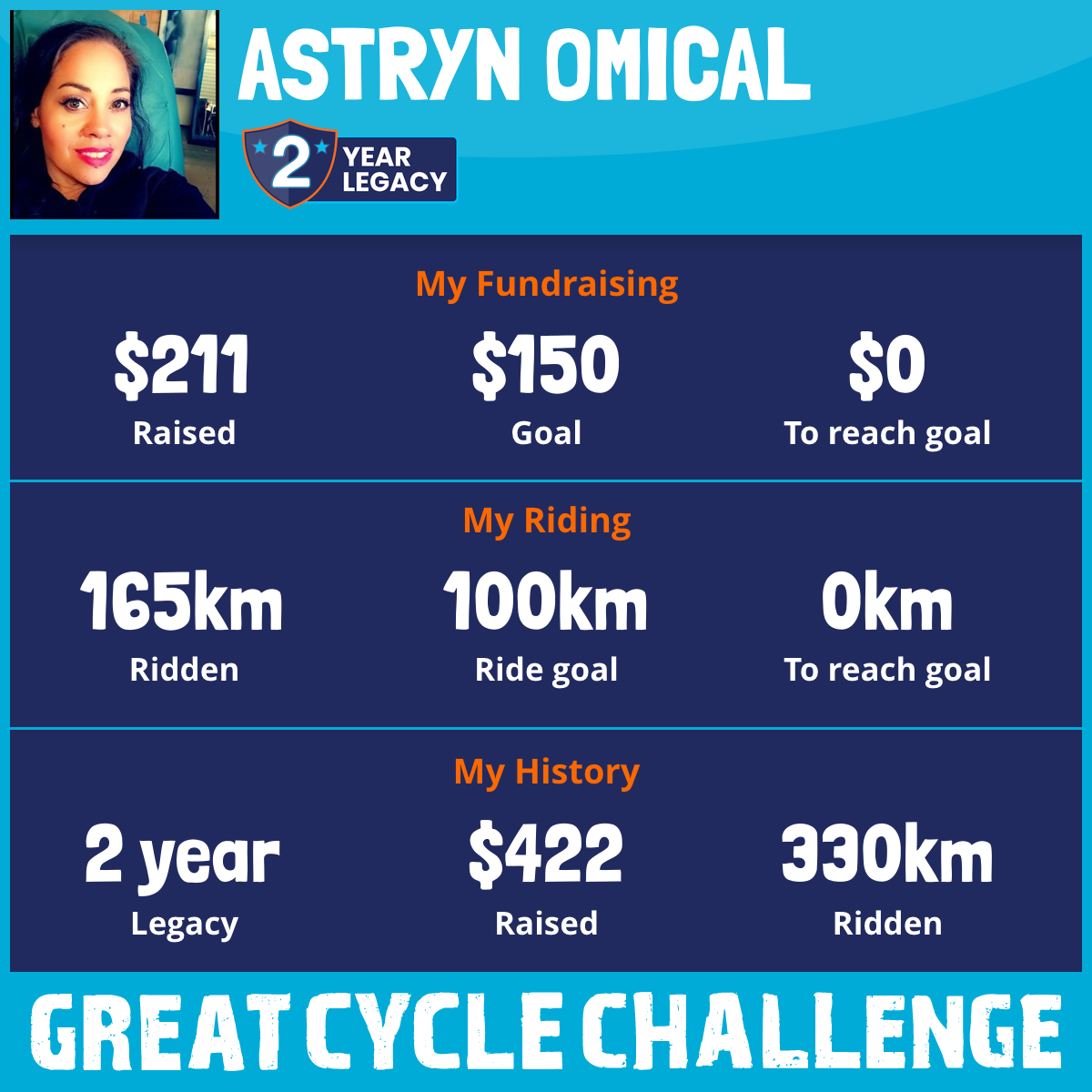 165 km Ridden$211 Raised2025