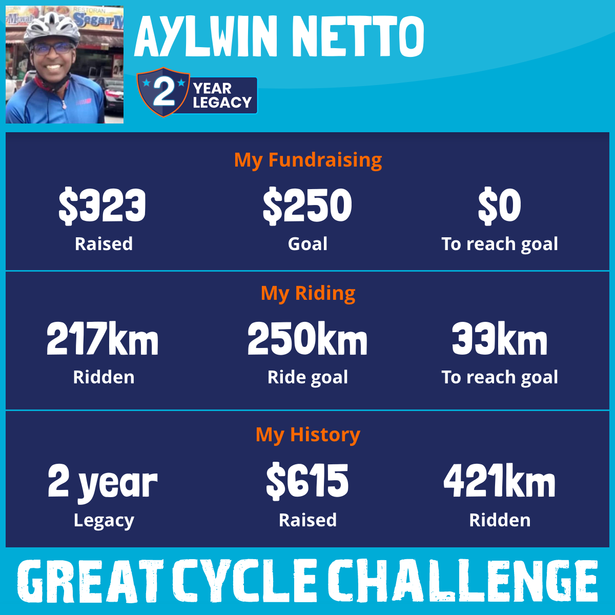 217 km Ridden$323 Raised2025