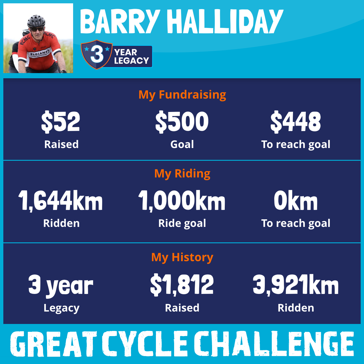 1,644 km Ridden$52 Raised2026