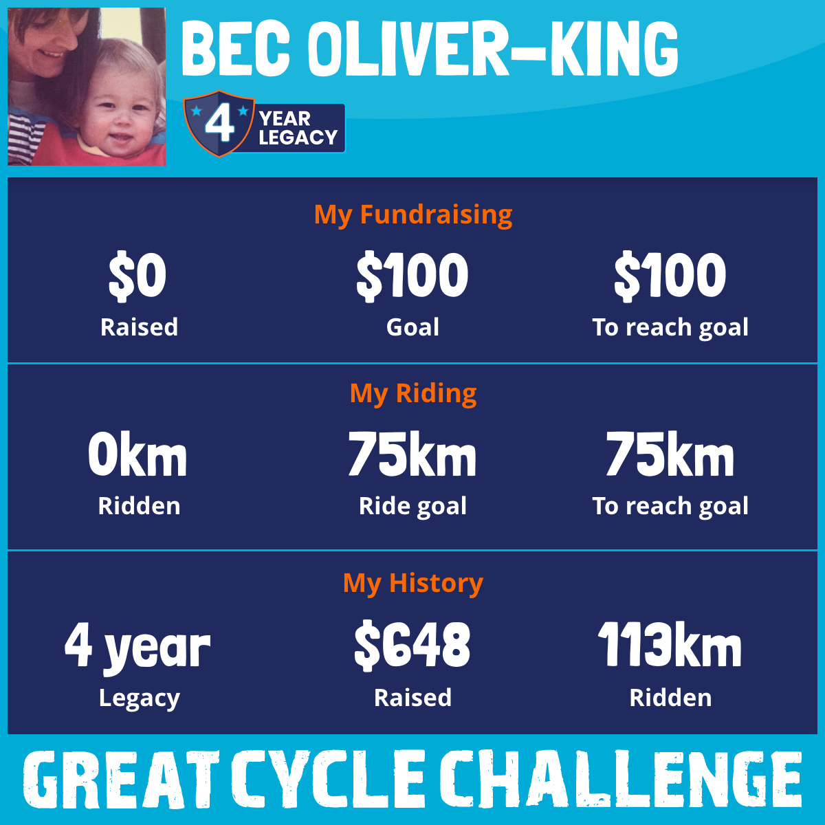 I am riding 75 km in memory of Jean Oliver-King. Please sponsor me and support my challenge to fight kids' cancer and save little lives.