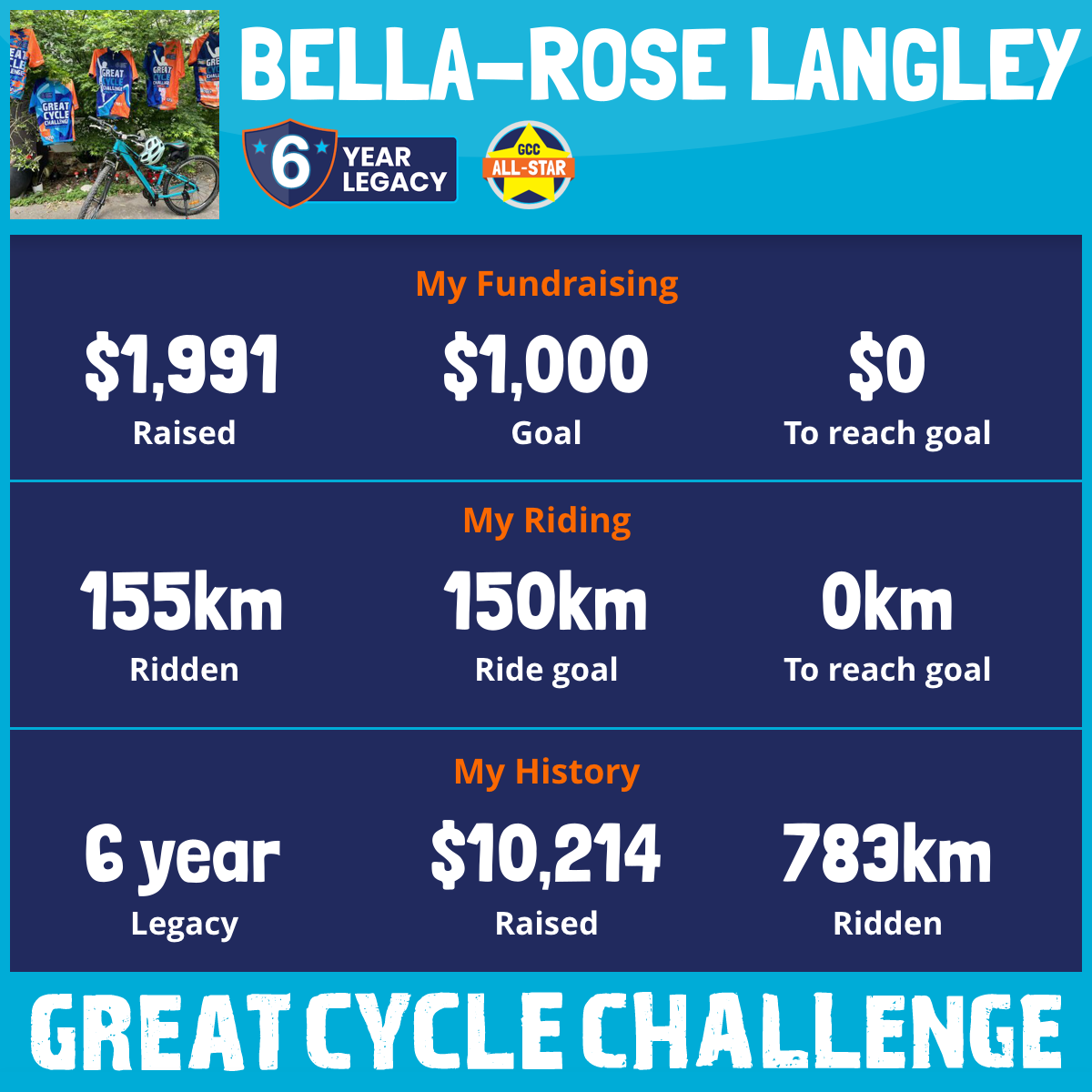 150 km Ridden$1,774 Raised2022
