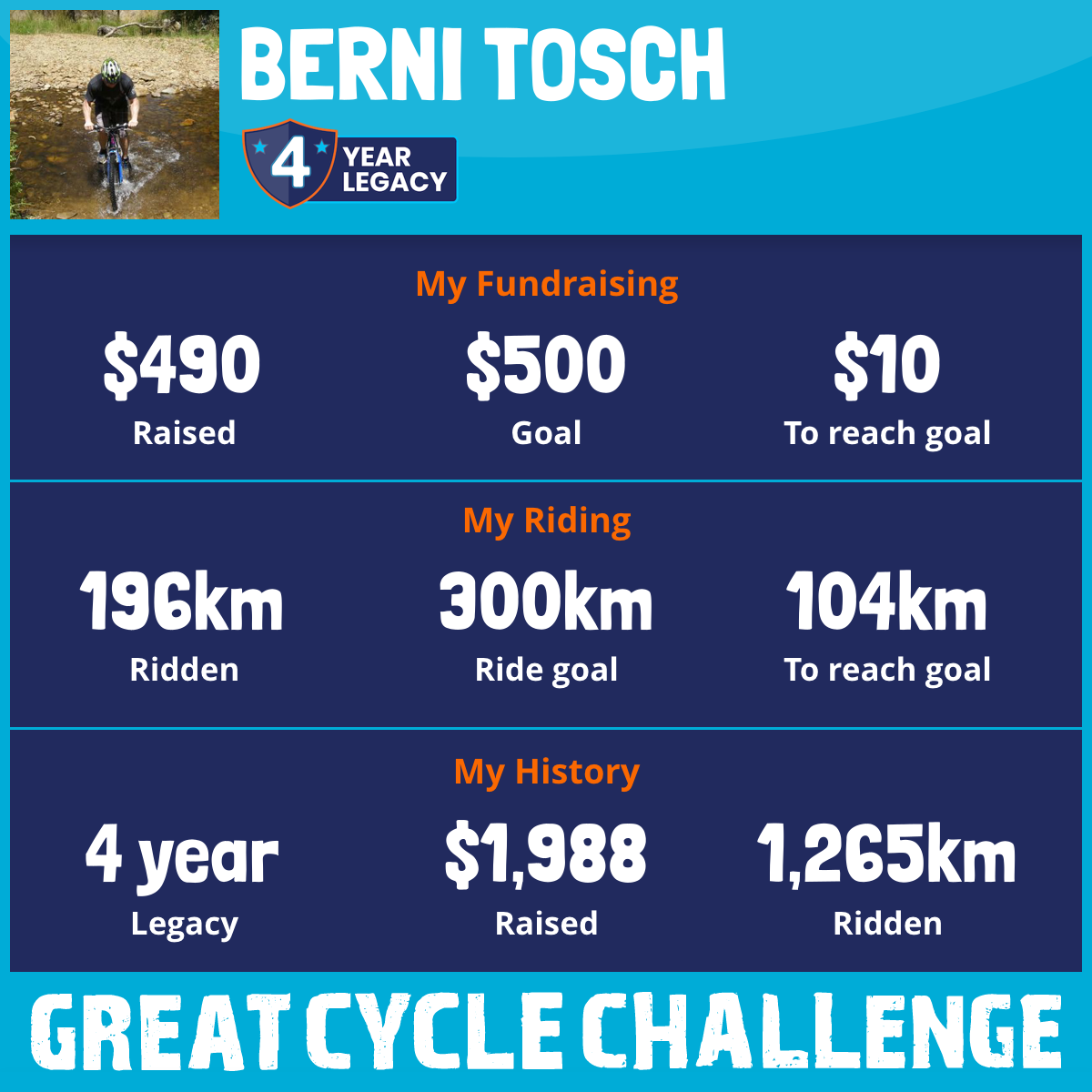 196 km Ridden$490 Raised2026
