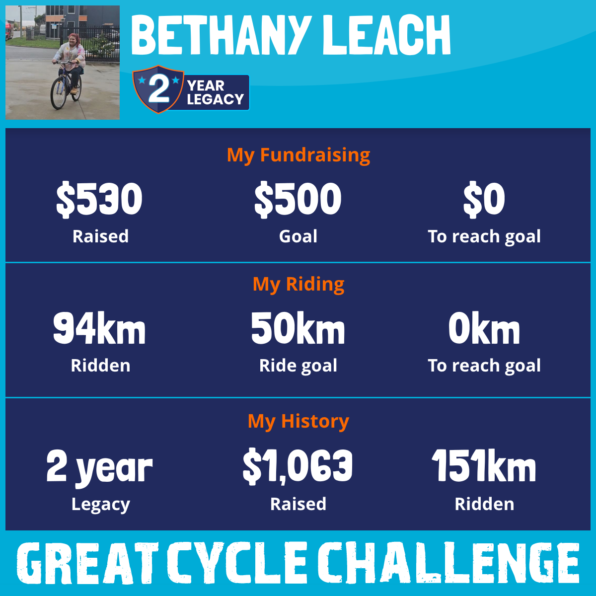 94 km Ridden$530 Raised2026