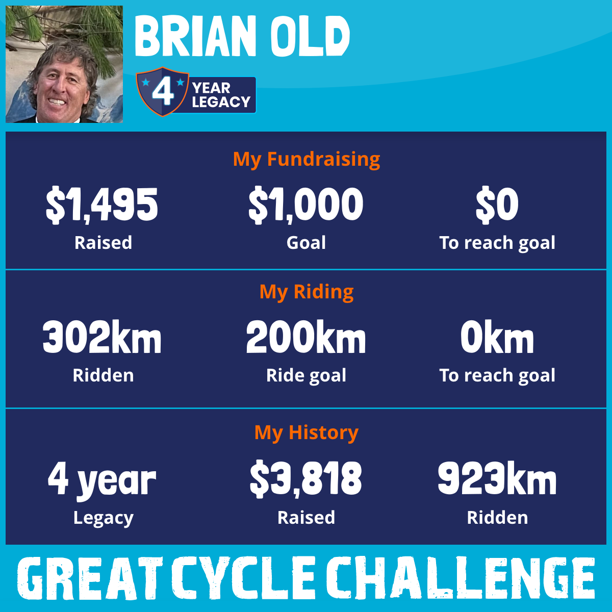 302 km Ridden$1,495 Raised2026