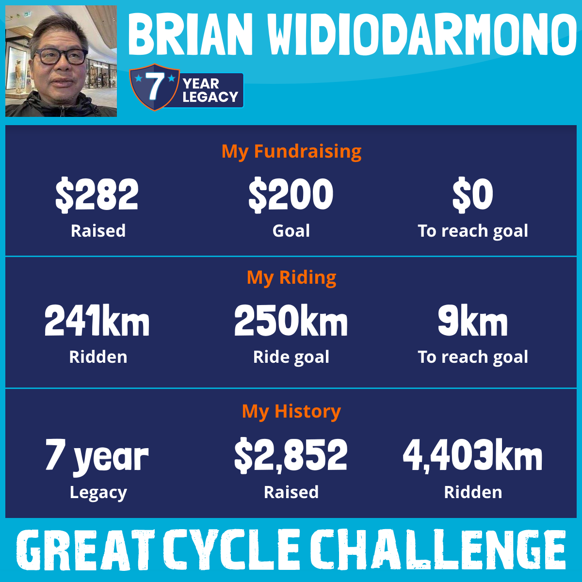 241 km Ridden$282 Raised2026