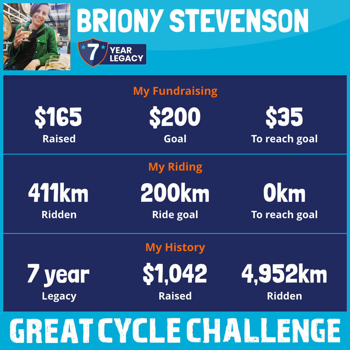 411 km Ridden$165 Raised2026