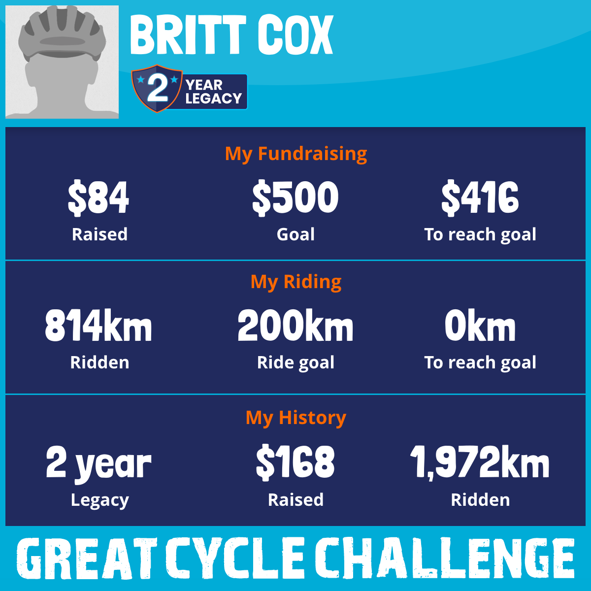 814 km Ridden$84 Raised2026