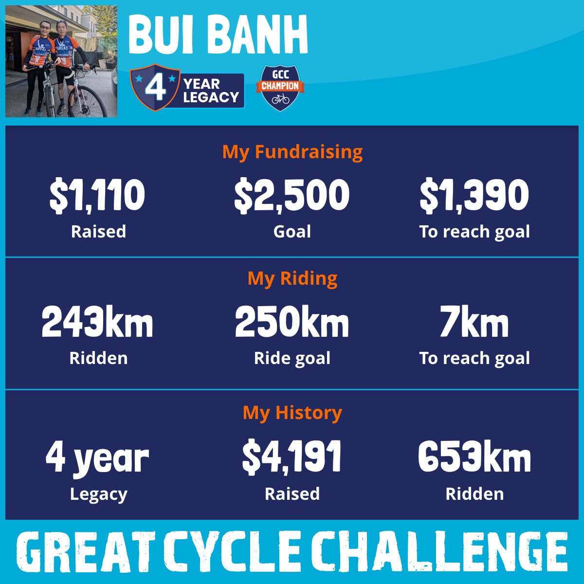 243 km Ridden$1,110 Raised2026