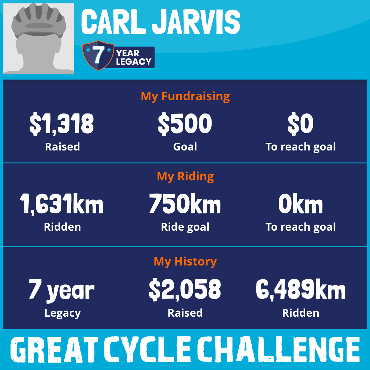 1,631 km Ridden$1,318 Raised2026