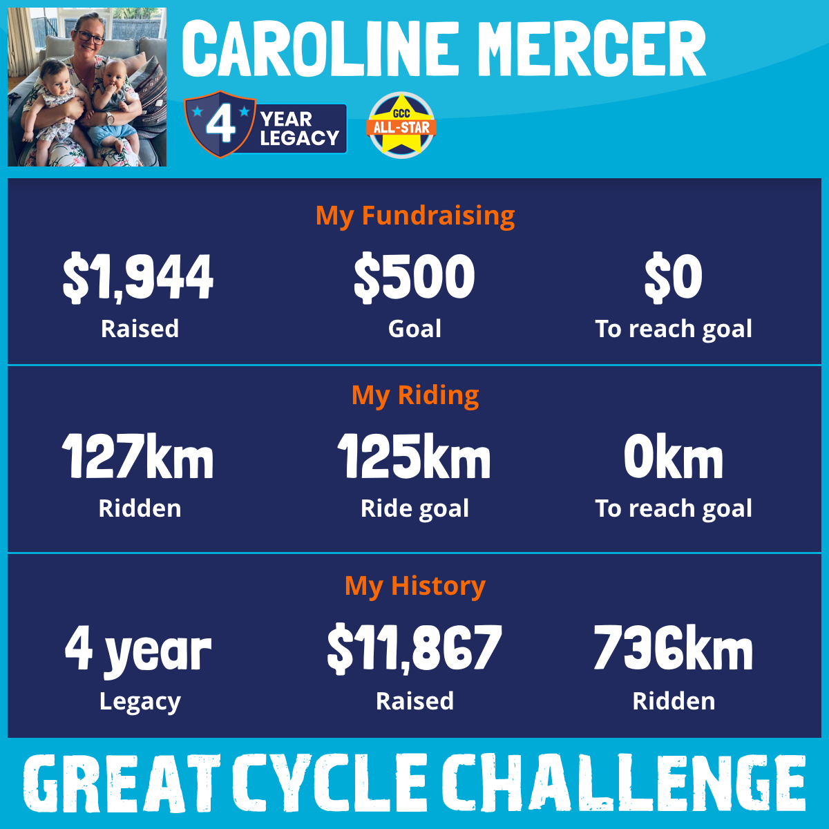 127 km Ridden$1,944 Raised2026