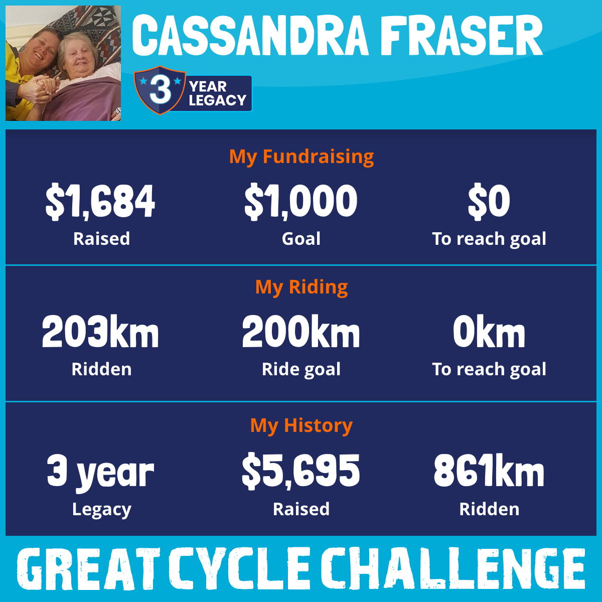 203 km Ridden$1,684 Raised2026