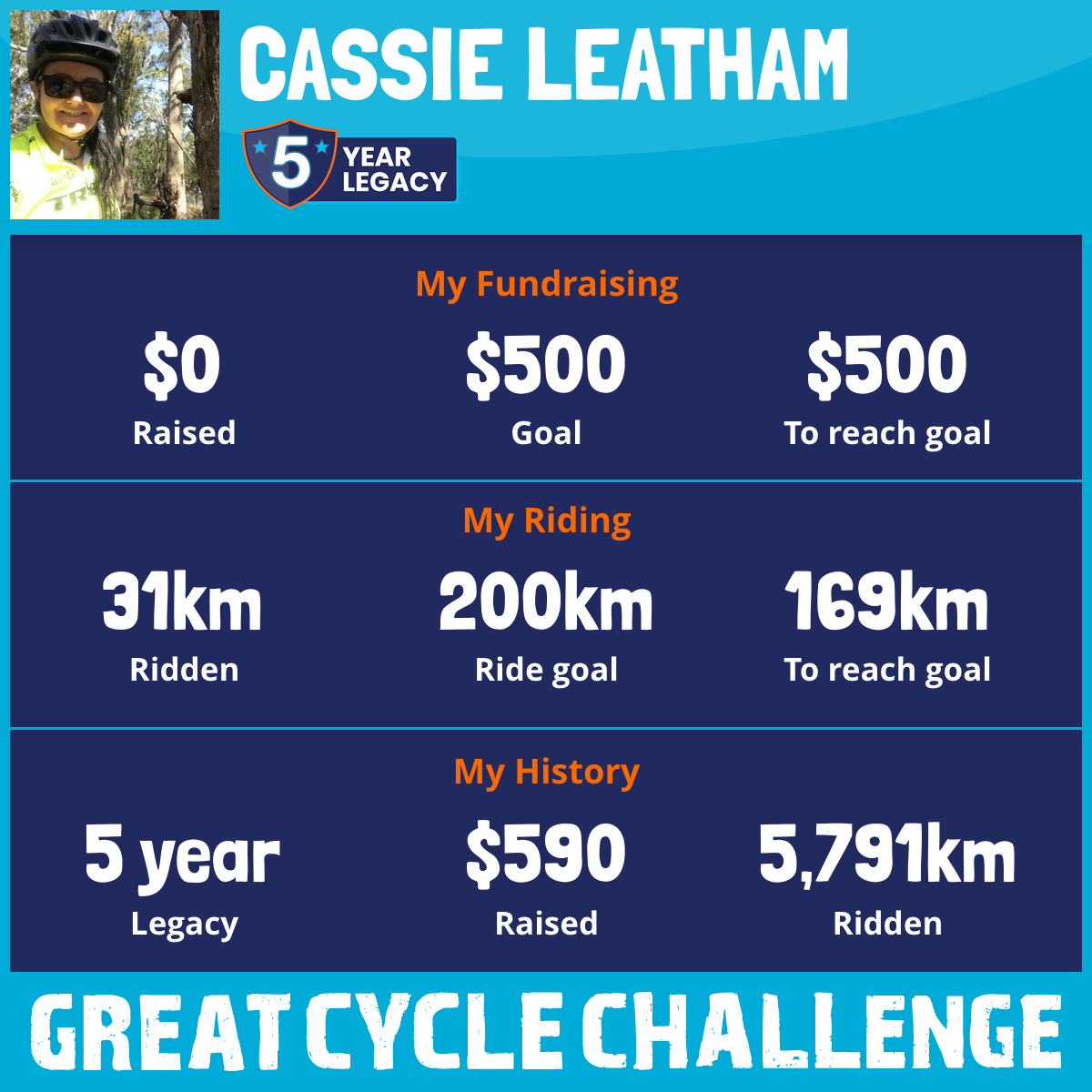 And so I am riding and raising funds to support the Children's Medical Research Institute to continue their work into the prevention, diagnosis, treatment and finding a cure for childhood cancer.