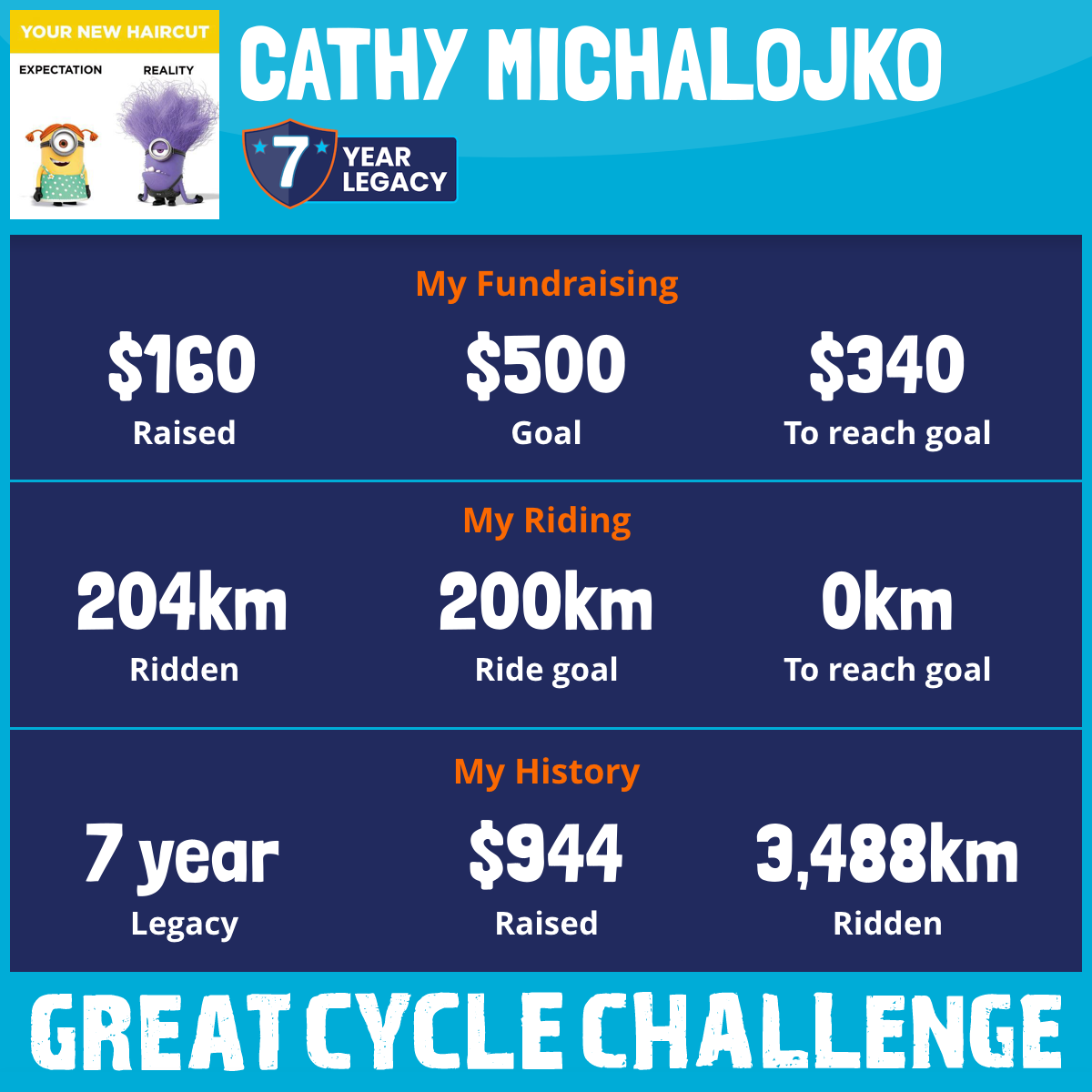 And so I am riding and raising funds to support the Children's Medical Research Institute to continue their work into the prevention, diagnosis, treatment and finding a cure for childhood cancer.
