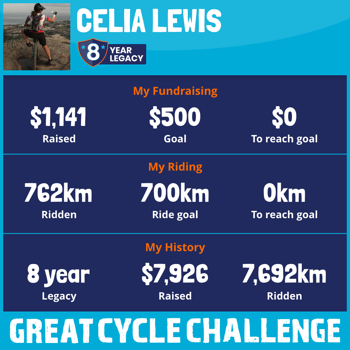 762 km Ridden$1,141 Raised2026
