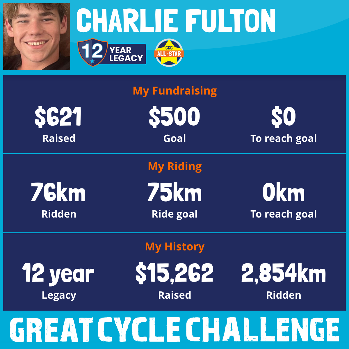 This October, I am taking part in the Great Cycle Challenge to fight kids' cancer! I have been riding in the Great Cycle Challenge since I was six years old - I love it!