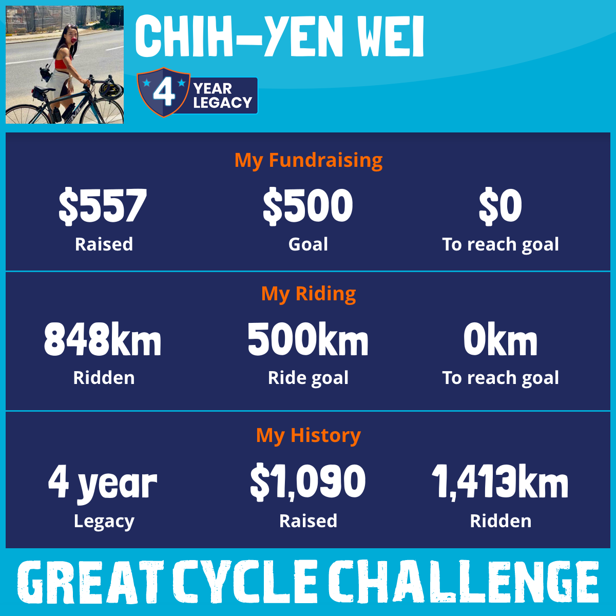 And so I am riding and raising funds to support the Children's Medical Research Institute to continue their work into the prevention, diagnosis, treatment and finding a cure for childhood cancer.