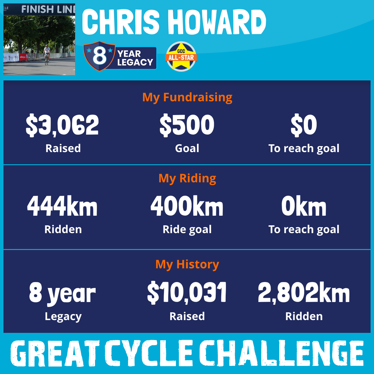 444 km Ridden$3,062 Raised2025