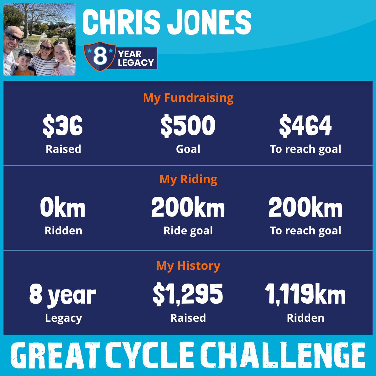 191 km Ridden$104 Raised2023