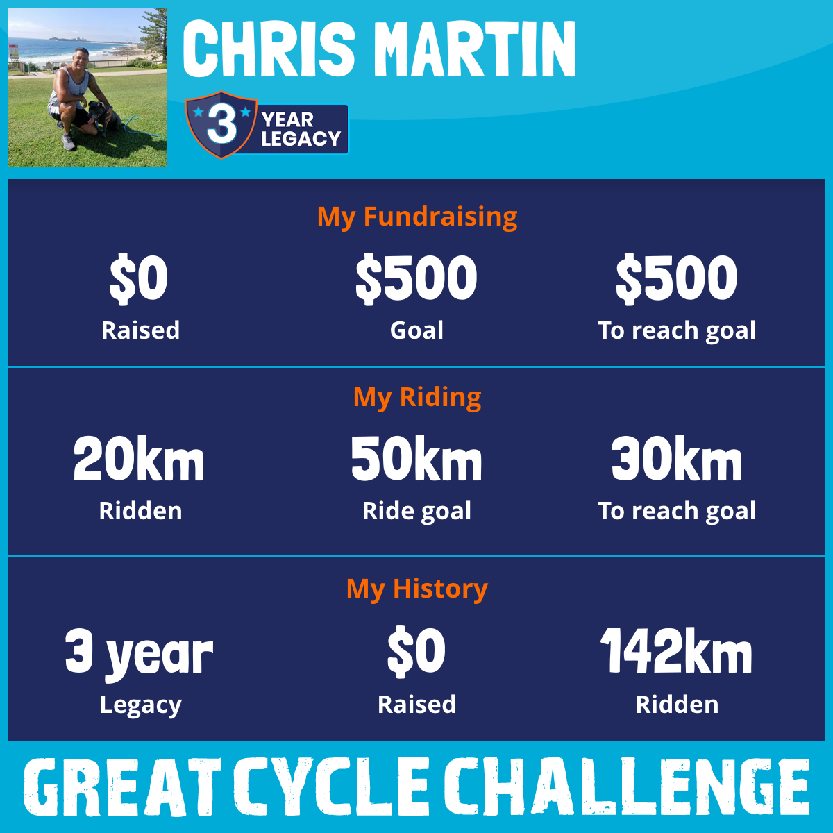 I am riding 50 km for Dad. Please sponsor me and support my challenge to fight kids' cancer and save little lives.