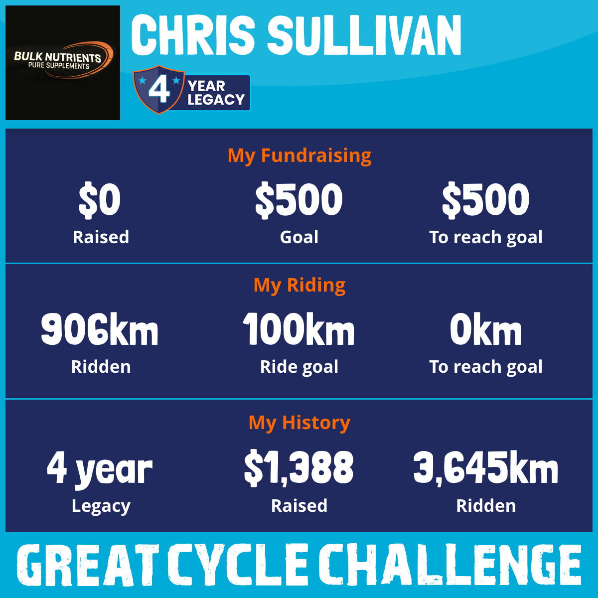 1,326 km Ridden$1,388 Raised2019