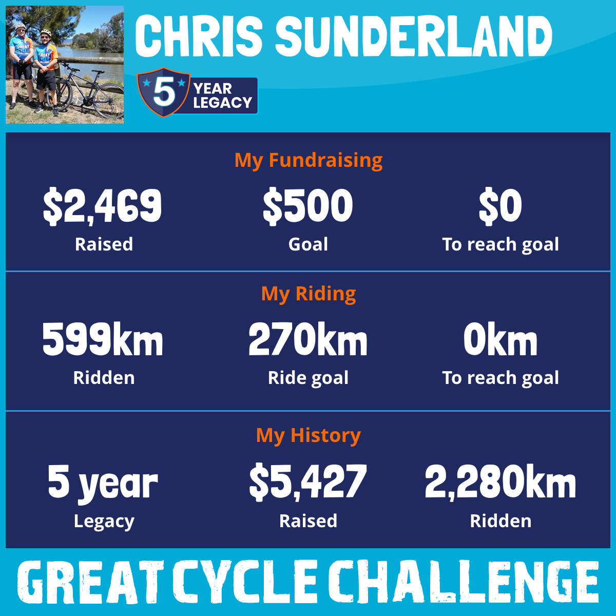 While all funds raised will go towards stopping kid's cancer - the biggest single killer of children from disease in Australia - I am also riding in solidarity for my mate Mark. Mark is fighting his own battle with cancer at the moment and has bravely signed up to ride himself! Shows what an awesome selfless bloke he is.