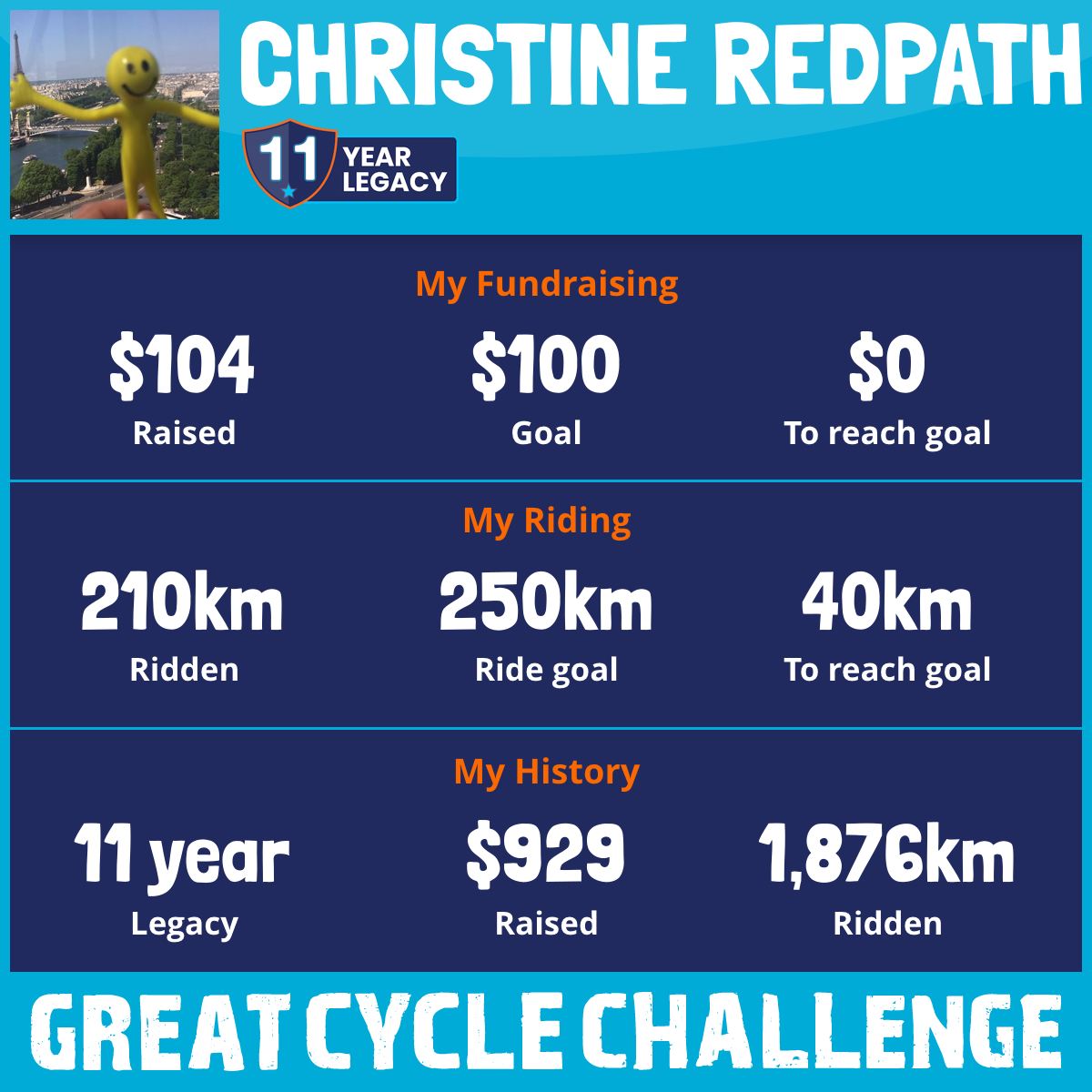 And so I am riding and raising funds to support the Children's Medical Research Institute to continue their work into the prevention, diagnosis, treatment and finding a cure for childhood cancer.