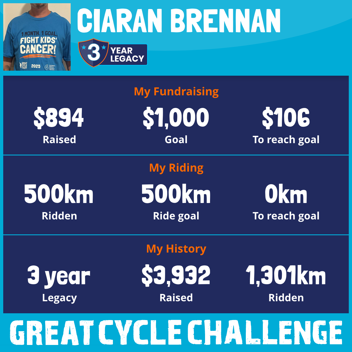 And so I am riding and raising funds to support the Children's Medical Research Institute to continue their work into the prevention, diagnosis, treatment and finding a cure for childhood cancer.