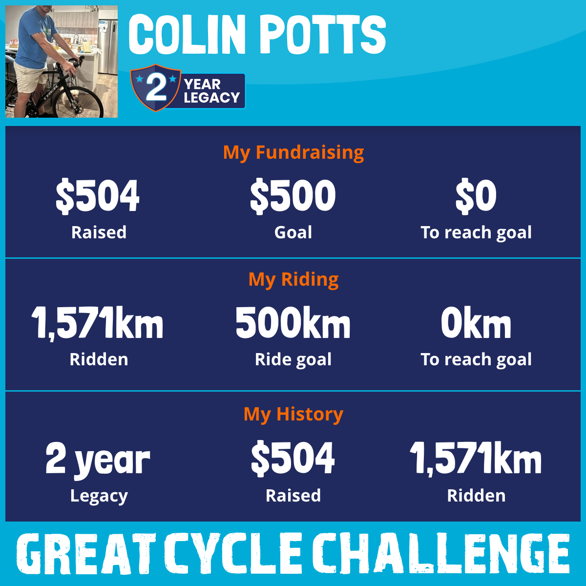 1,571 km Ridden$504 Raised2026