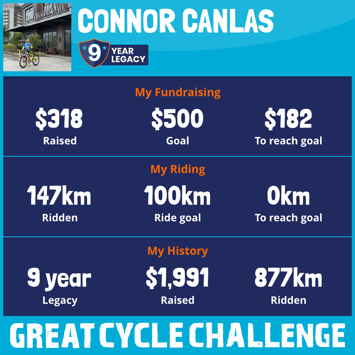 147 km Ridden$318 Raised2026