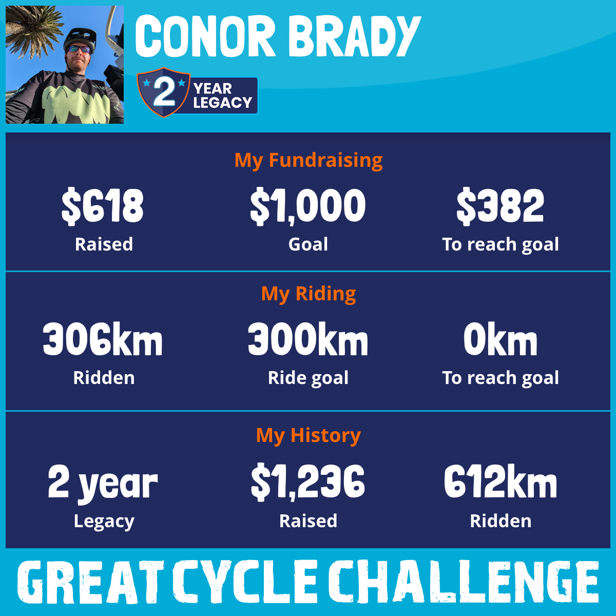 306 km Ridden$618 Raised2026