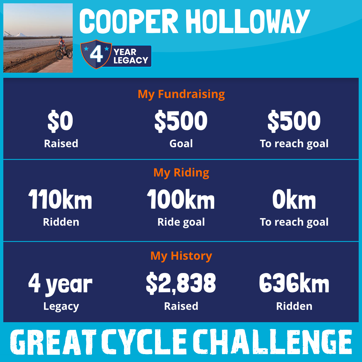 219 km Ridden$2,838 Raised2022