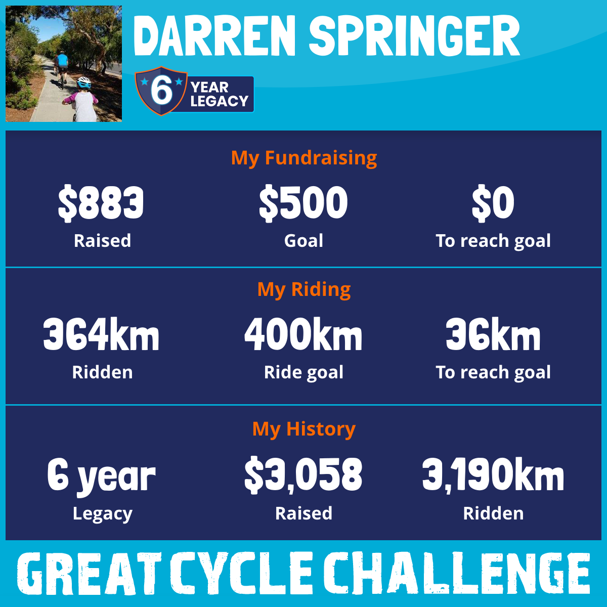 364 km Ridden$883 Raised2026